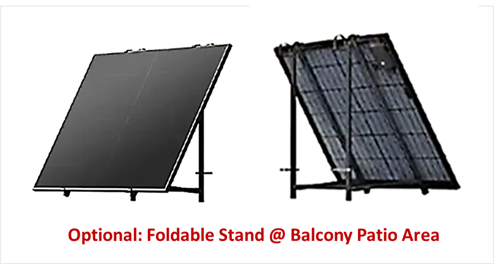 - Folding Portable Stand for solar panels x 4 unitsfor inner balcony patio area“if” Apartment Management Office regulation does not allow balcony fencing installation.