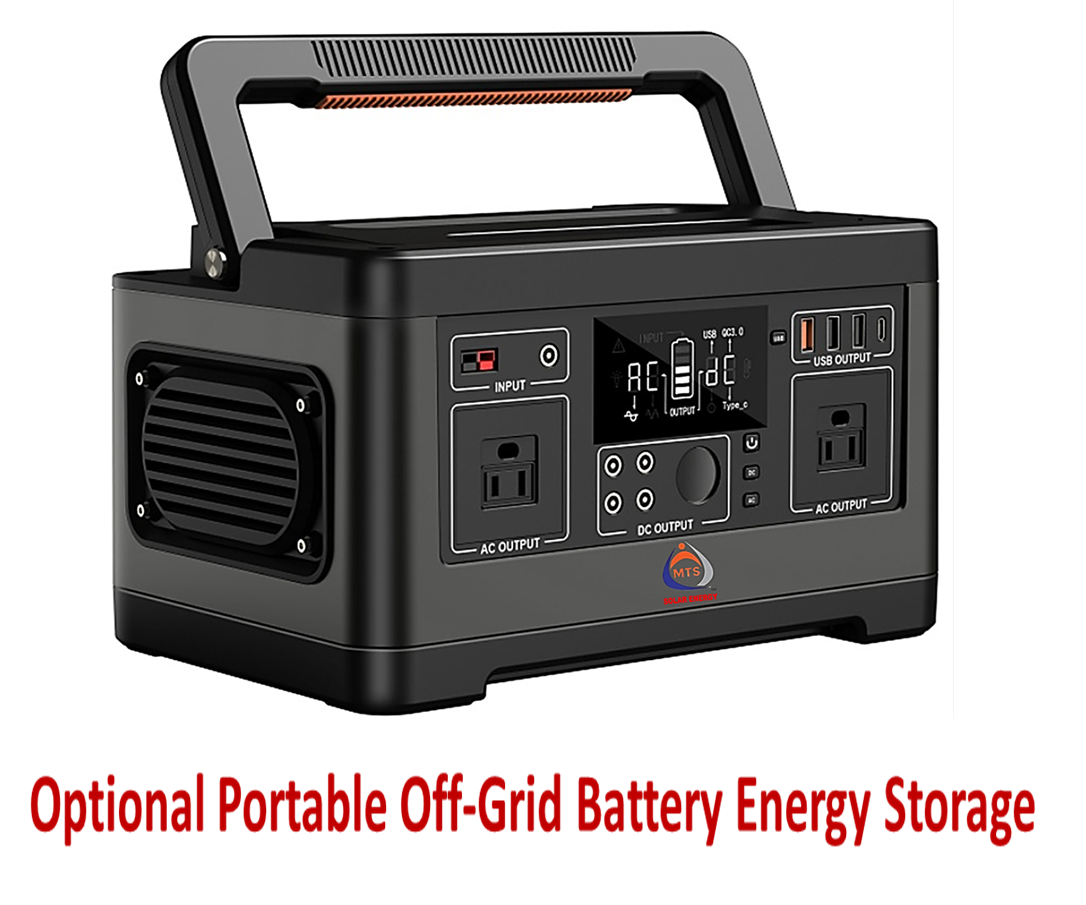 *Portable Off-Grid Battery Energy Storage of various power output (Not included in this kit)