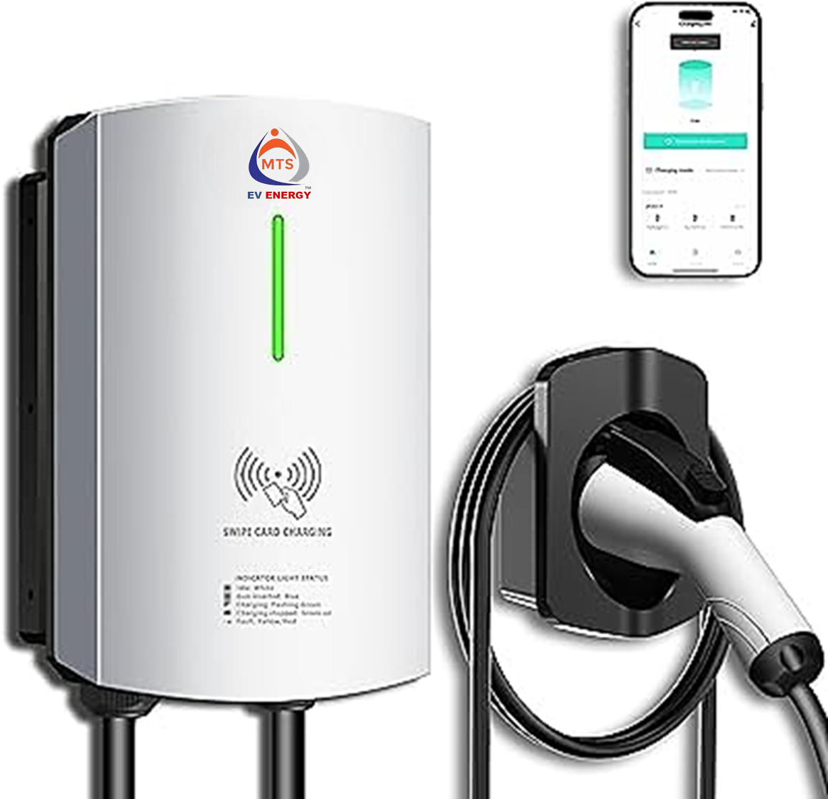 • Question: How does the swipe card functionality work?Answer: The swipe card functionality allows users to initiate a charging session quickly and conveniently using a card, similar to a credit or access card. This system is designed for ease of use, as it eliminates the need for complex app interactions every time you charge. Once the system recognizes the card, it activates charging, ensuring a seamless experience. This feature is particularly beneficial in shared residential garages or multi-family housing where different users frequently charge their electric vehicles.