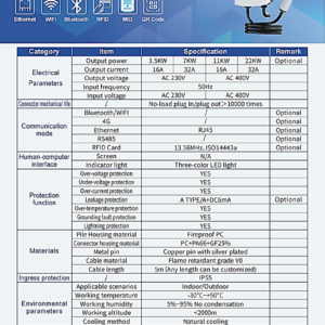 • Equipped with OCPP 1.6J (JSON) is a robust communication standard for Electric EV Vehicles (EV) Charger, enabling to talk to management systems using lightweight JSON messages over WebSockets for smart charging, remote control, diagnostics, and authorization, making it ideal for large networks. The ‘J’ signifies its use of JSON (JavaScript Object Notation) for data exchange, offering features like smart charging profiles and device management, making it a key standard in the EV charging industry.
